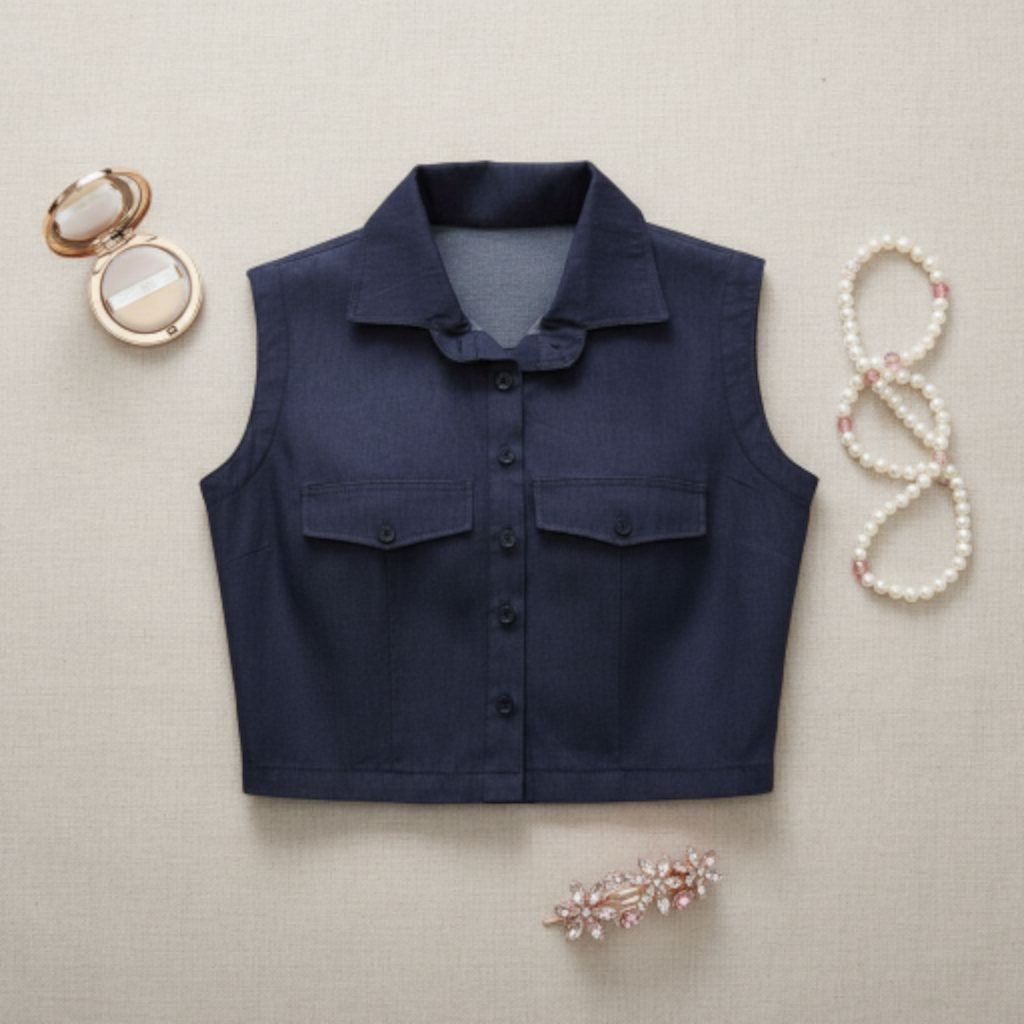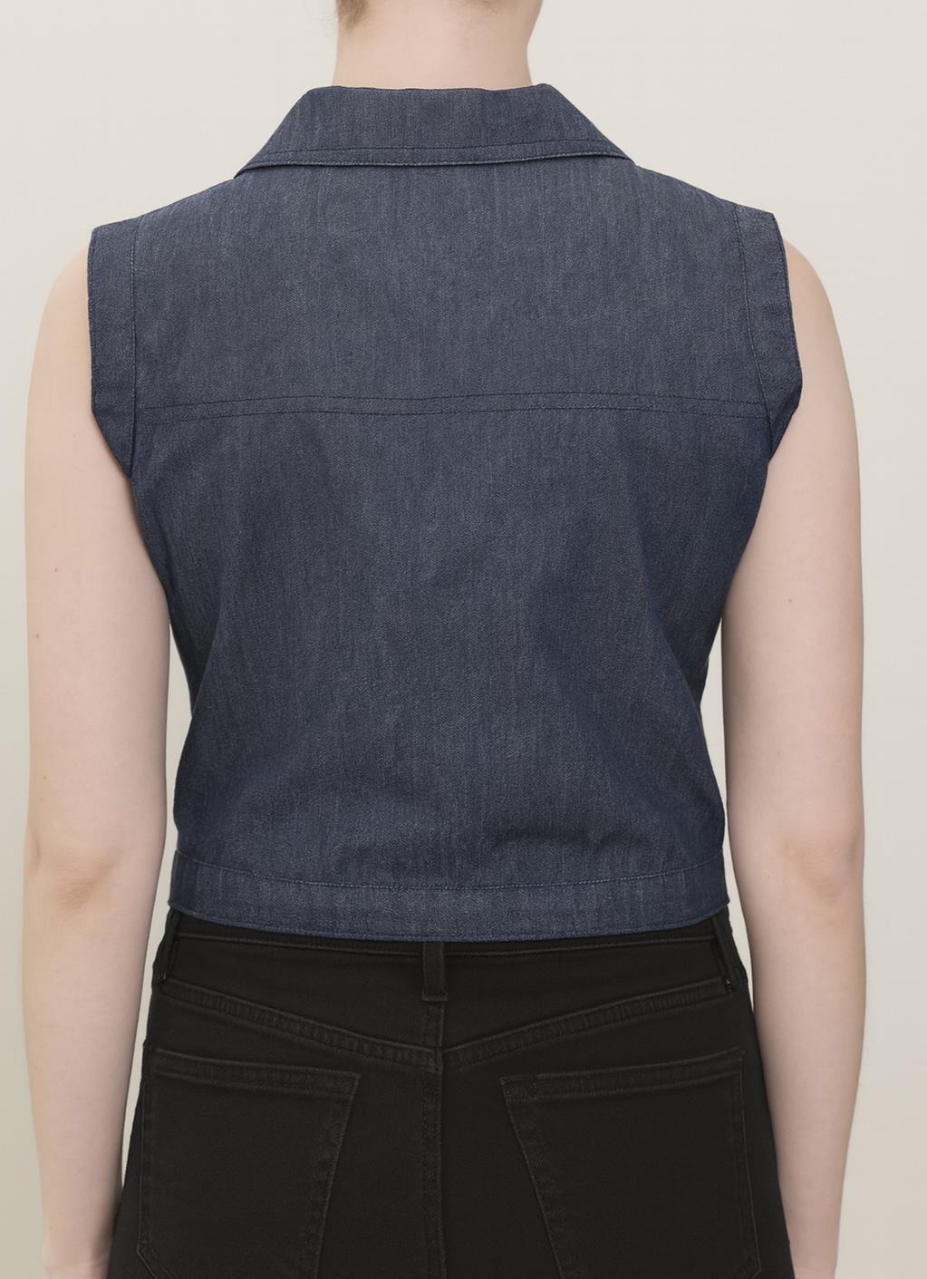 Soft lightweight denim. Chic buttons and small pockets with elegant collar.